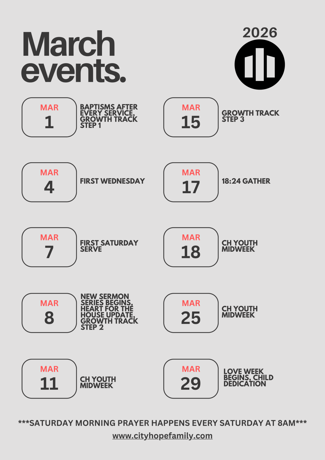 Explore what it means to lead at City Hope and discover how you can grow in your leadership potential to serve others and strengthen your gifting. Step Three takes place every third Sunday of the month at 12:45 pm.